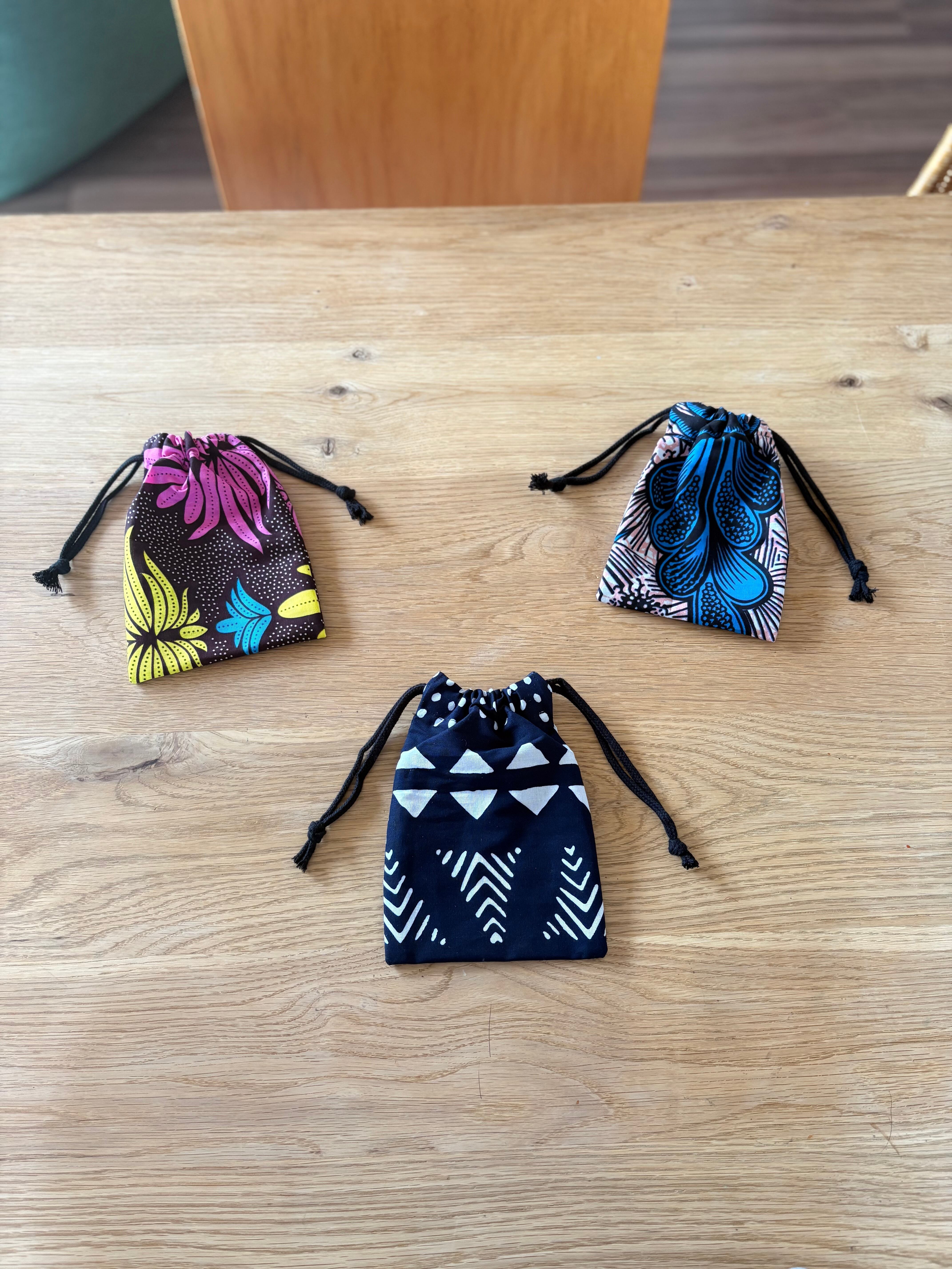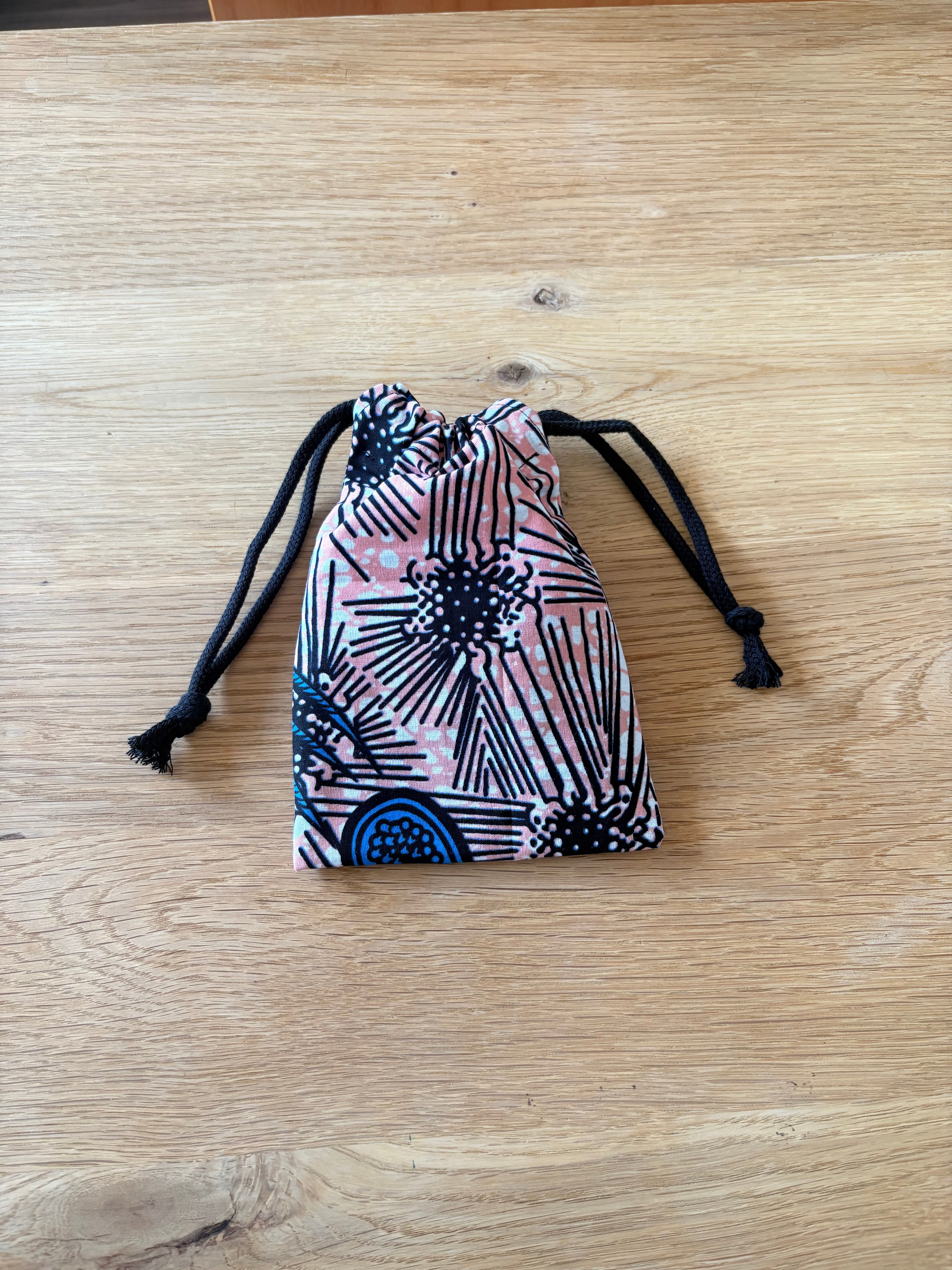 明るい気分にさせてくれる、アフリカ布の巾着です。