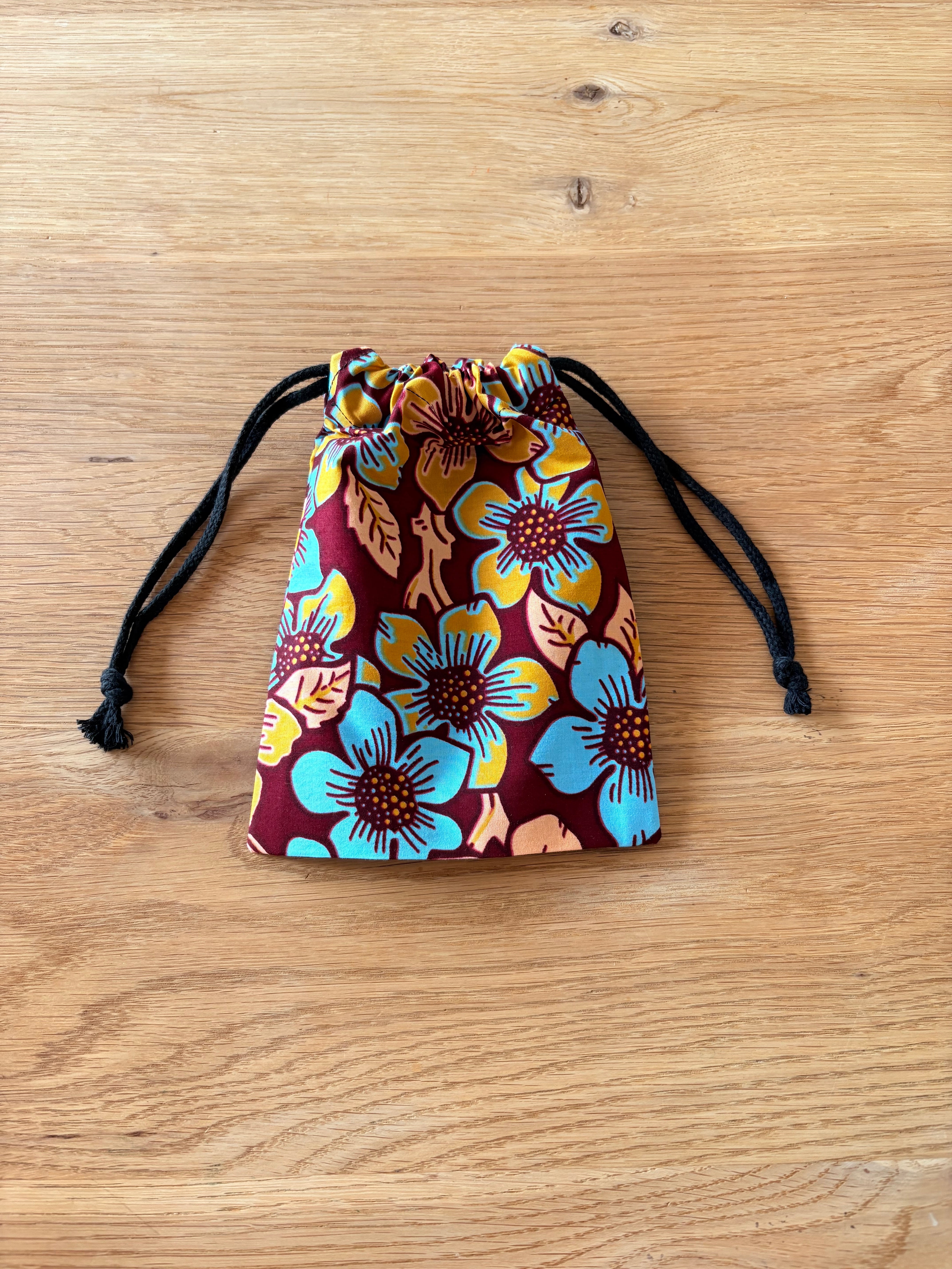 明るい気分にさせてくれる、アフリカ布の巾着です。